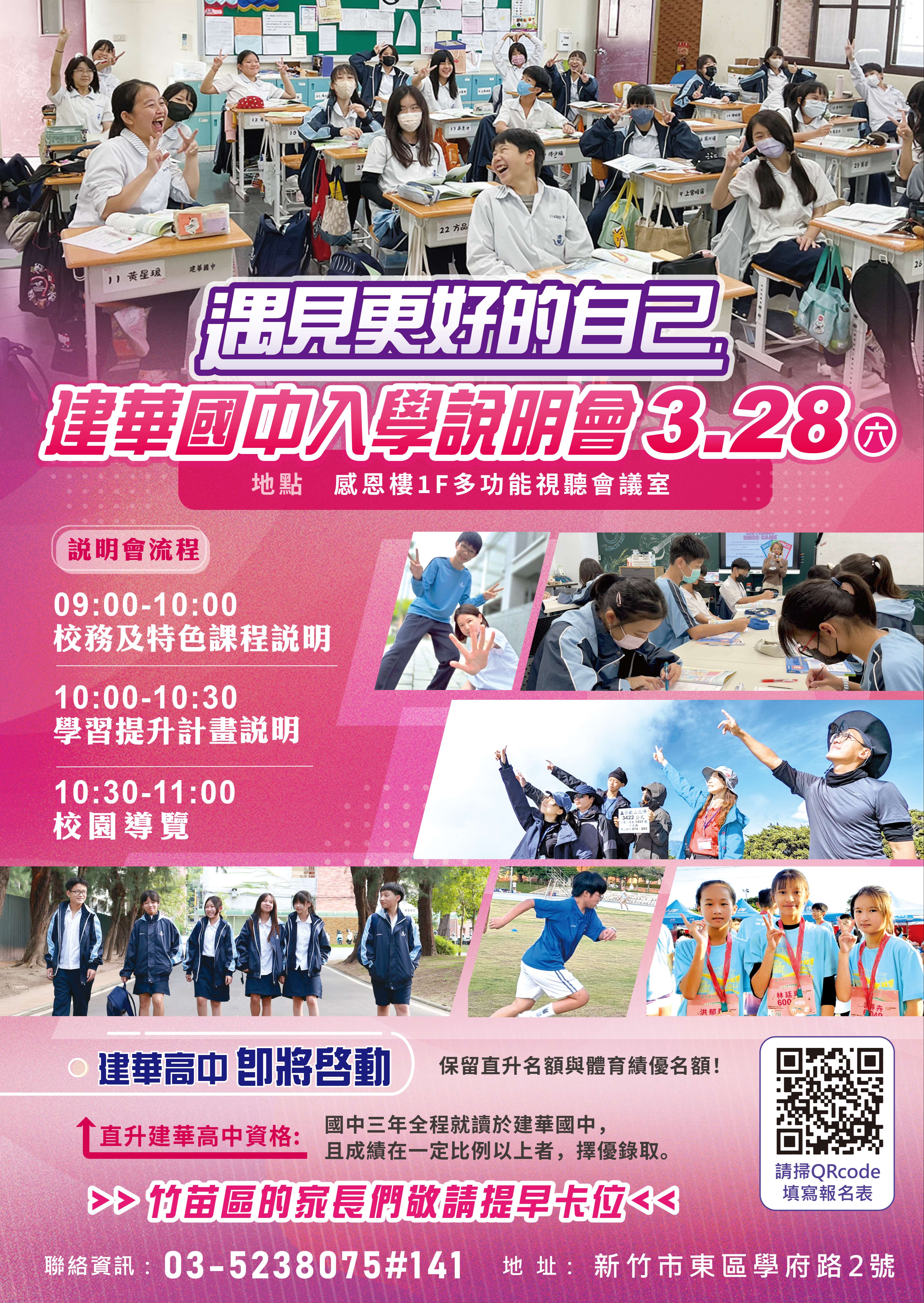 建華國中將於115年3月28日(六)9:00-11:00 舉辦招生說明 會,詳情請參閱附件。