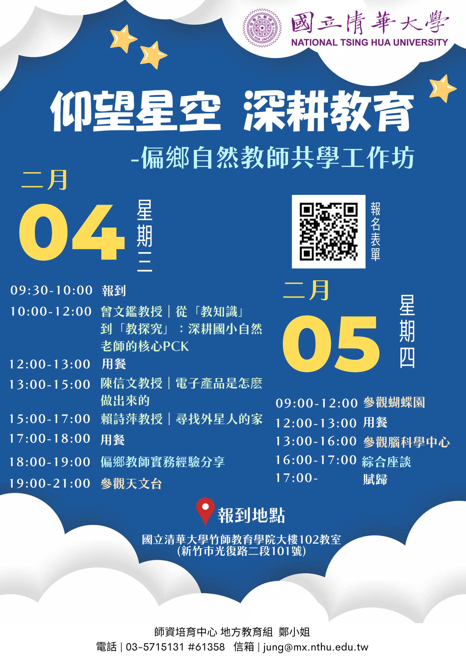 國立清華大學辦理「仰望星空.深耕教育—偏鄉自然教師共學 工作坊」