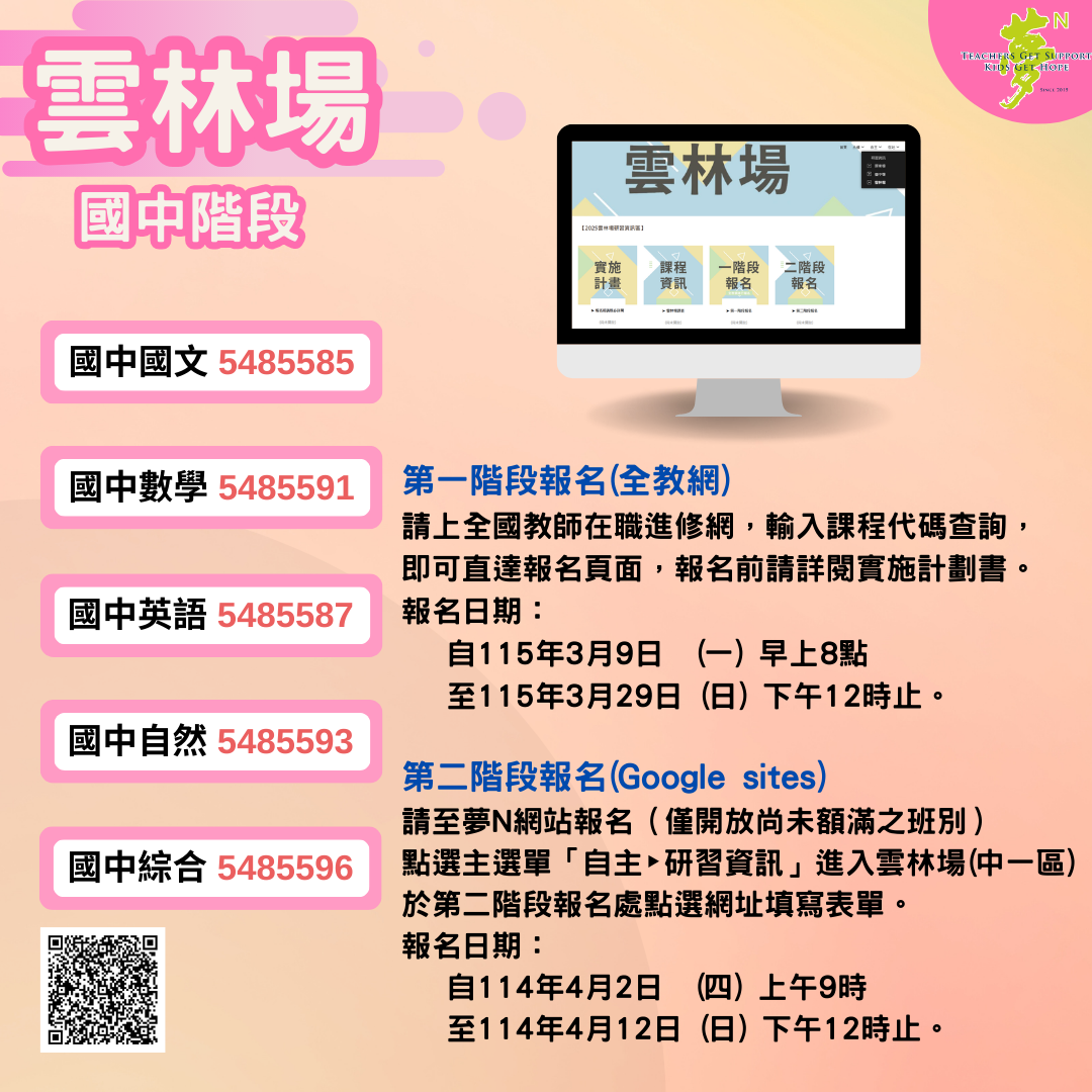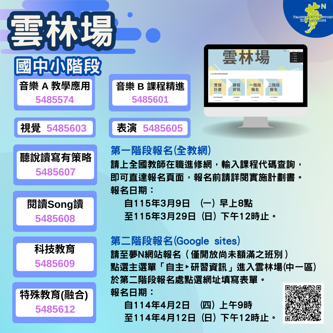 雲林縣政府辦理「115年度教師專業成長研習實施計畫-夢的N次方素養工作坊-中一區雲林場」